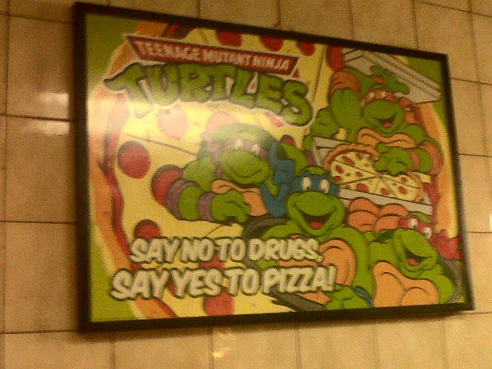 I wonder what kind of social circles the Turtles move in where it is a straight choice between drugs and pizza? No wonder they live in a sewer... And to think they had the nerve to name themselves after Renaissance painters!